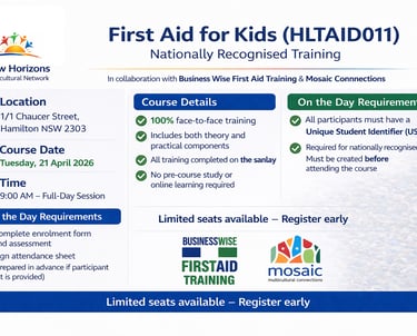 New Horizons supports multicultural families, migrants, refugees, youth, and women in NSW.